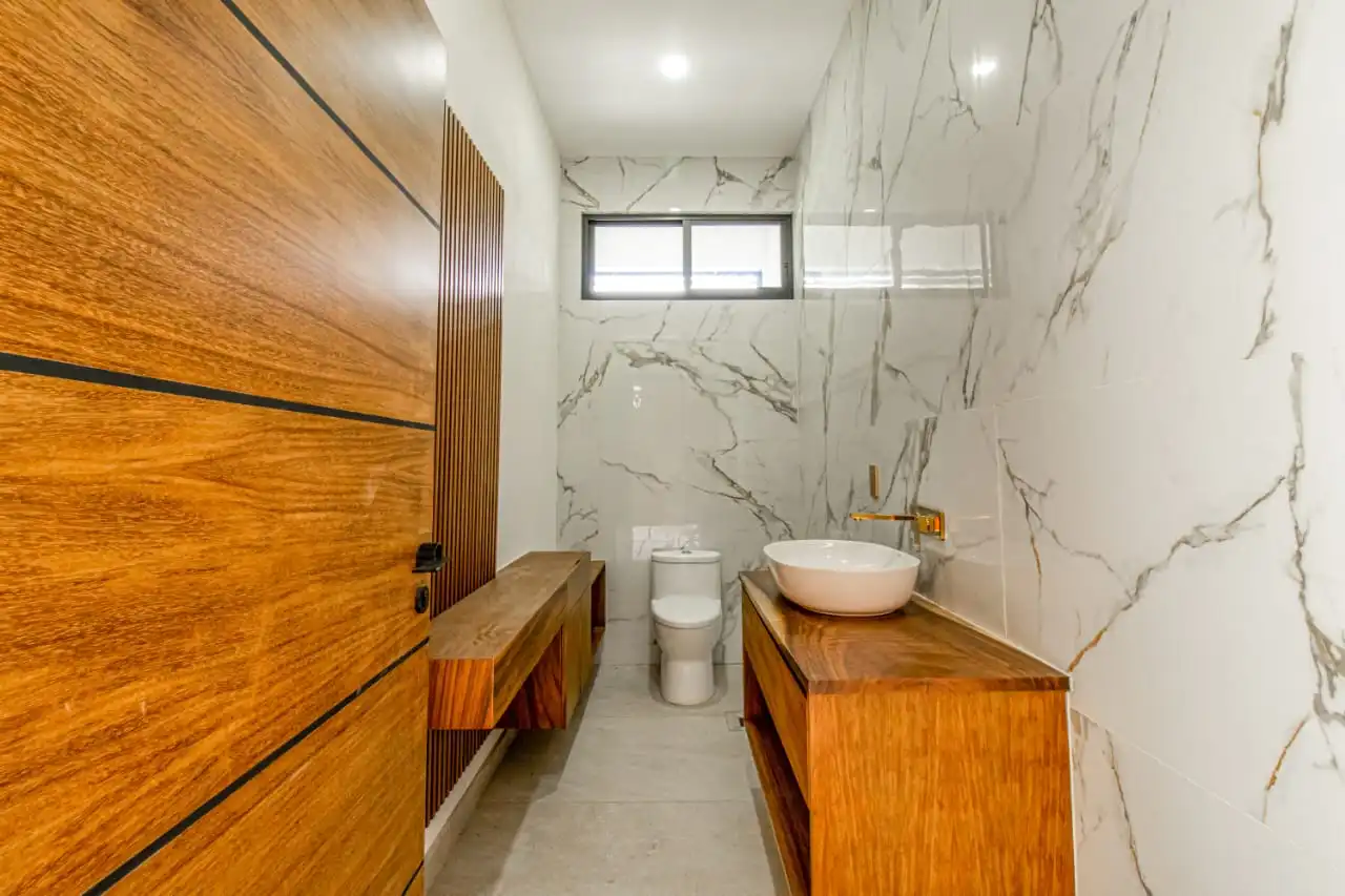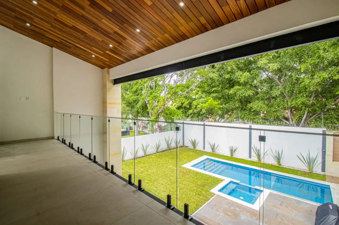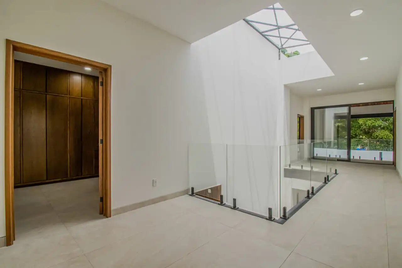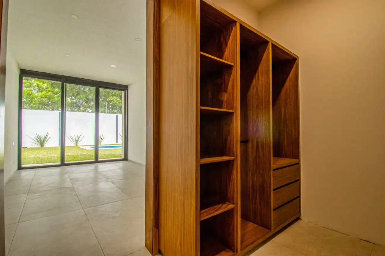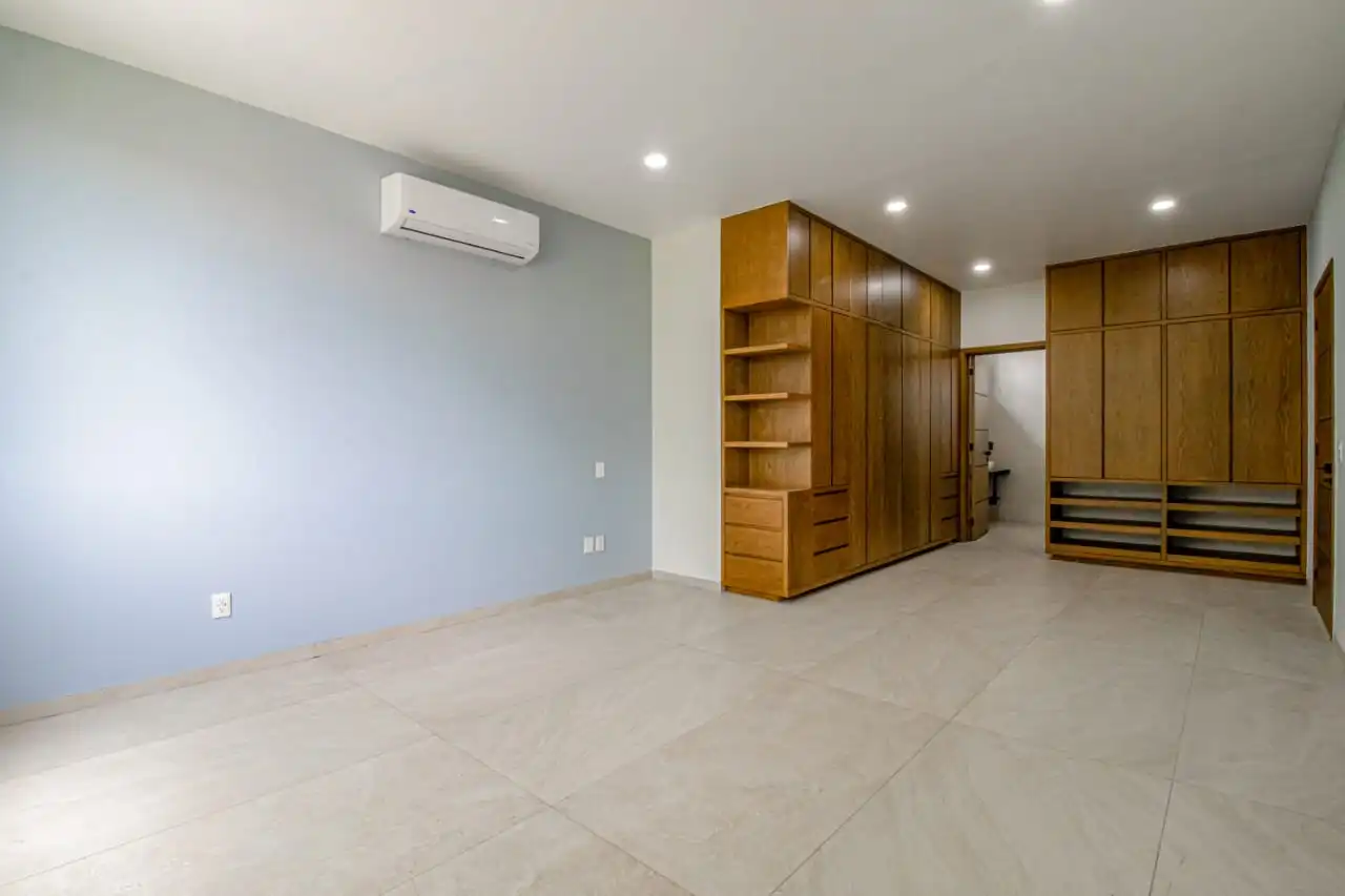1 Recamara principal con baño completo doble lavado, regadera 3 aguas, nichos de luz , vestidor, closet, aire acondicionado, terreza con vista a la alberca