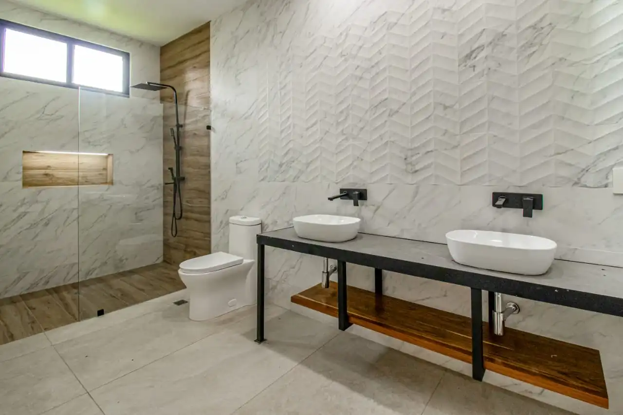 Barra de marmol Griego con desayunador