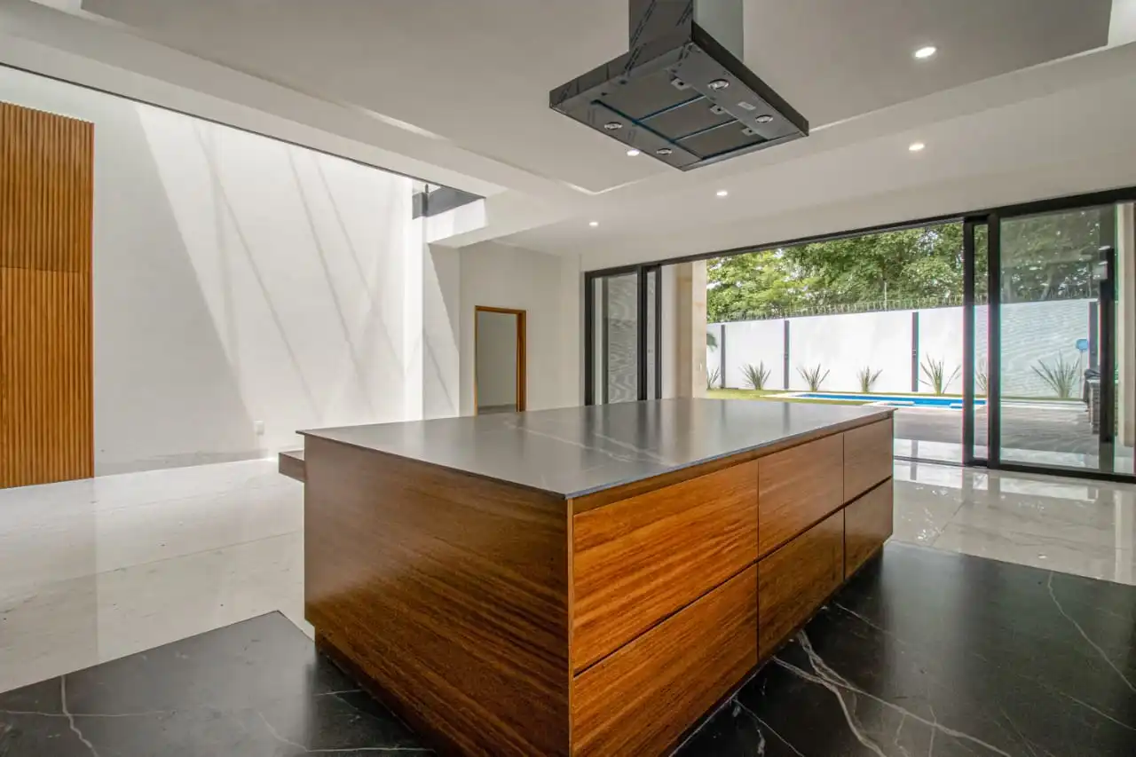 Cocina equipada (Estufa Campana marca Teka), Horno de microondas, Refrigerador, Alacena con cierre lento